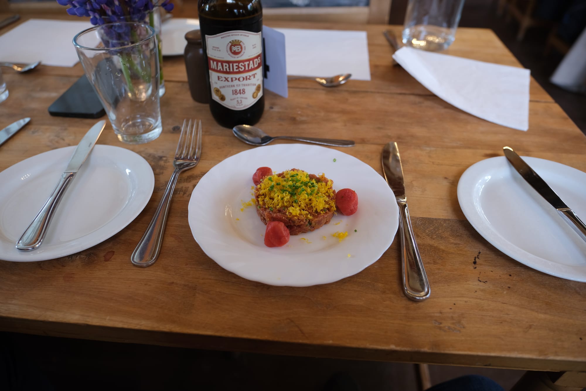 Het eten is geweldig. Voorgerecht tartaar van lam, hoofdgerecht stoofvlees met ham en spinazie en yoghurt. Heerlijk allemaal. Daarna valt het kassasysteem uit dus het toetje moet even wachten. We gaan alvast buiten zitten. De band speelt melodische rustige muziek, wel veel van hetzelfde maar de sfeer is echt heel goed. Het is 's avond wel snel aan het afkoelen dus we trekken truien en jassen aan, leggen een deken op onze benen en luisteren een uurtje naar de band. We drinken een virgin cocktail en rond 21 uur gaan we richting huis.