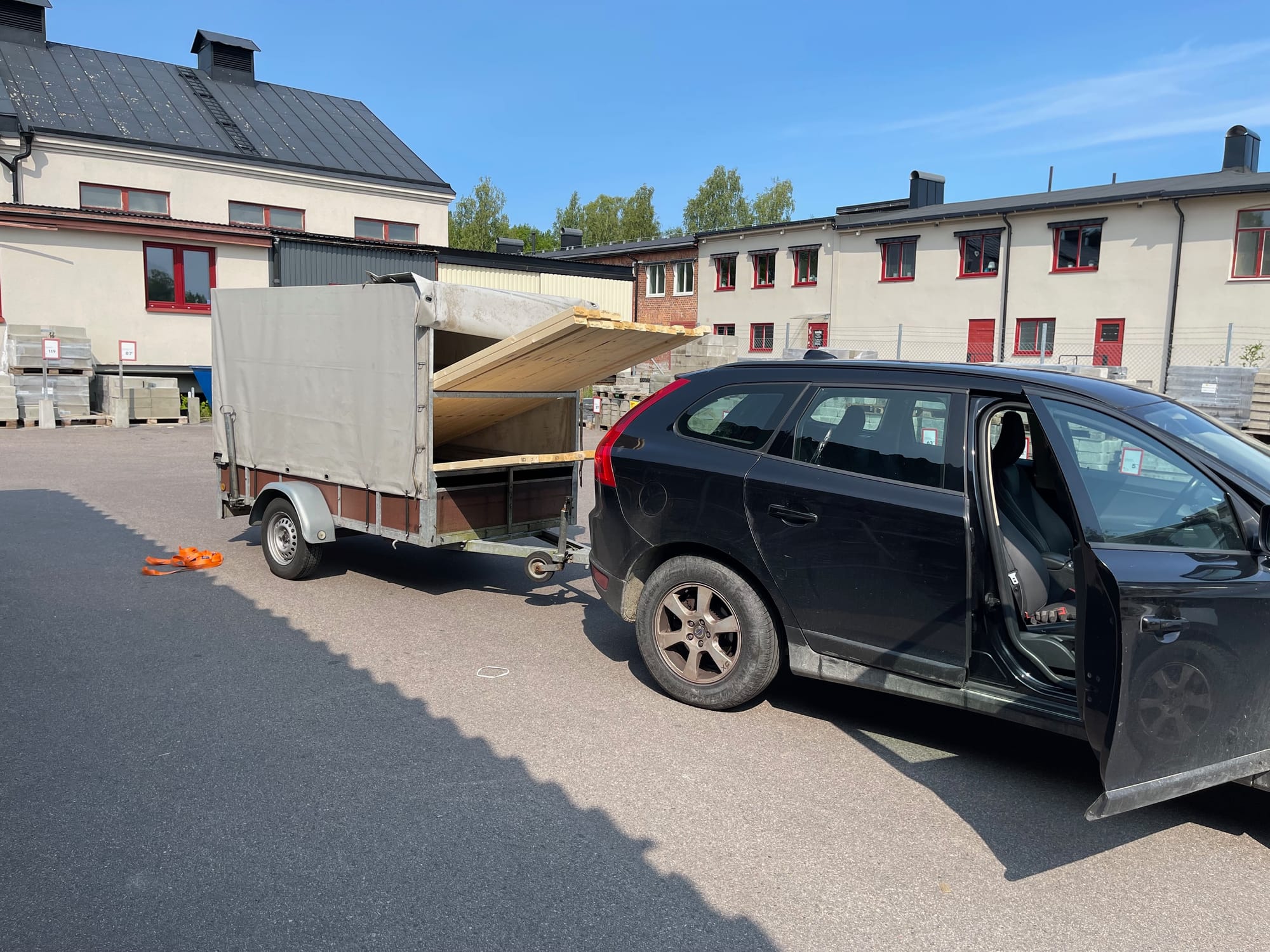 Vandaag hebben we op de planning staan om balken en platen te halen om de buitenkant van de container klaar te gaan maken. We gaan dus met de aanhanger naar de Bygmaxx en laden in wat we nodig hebben.