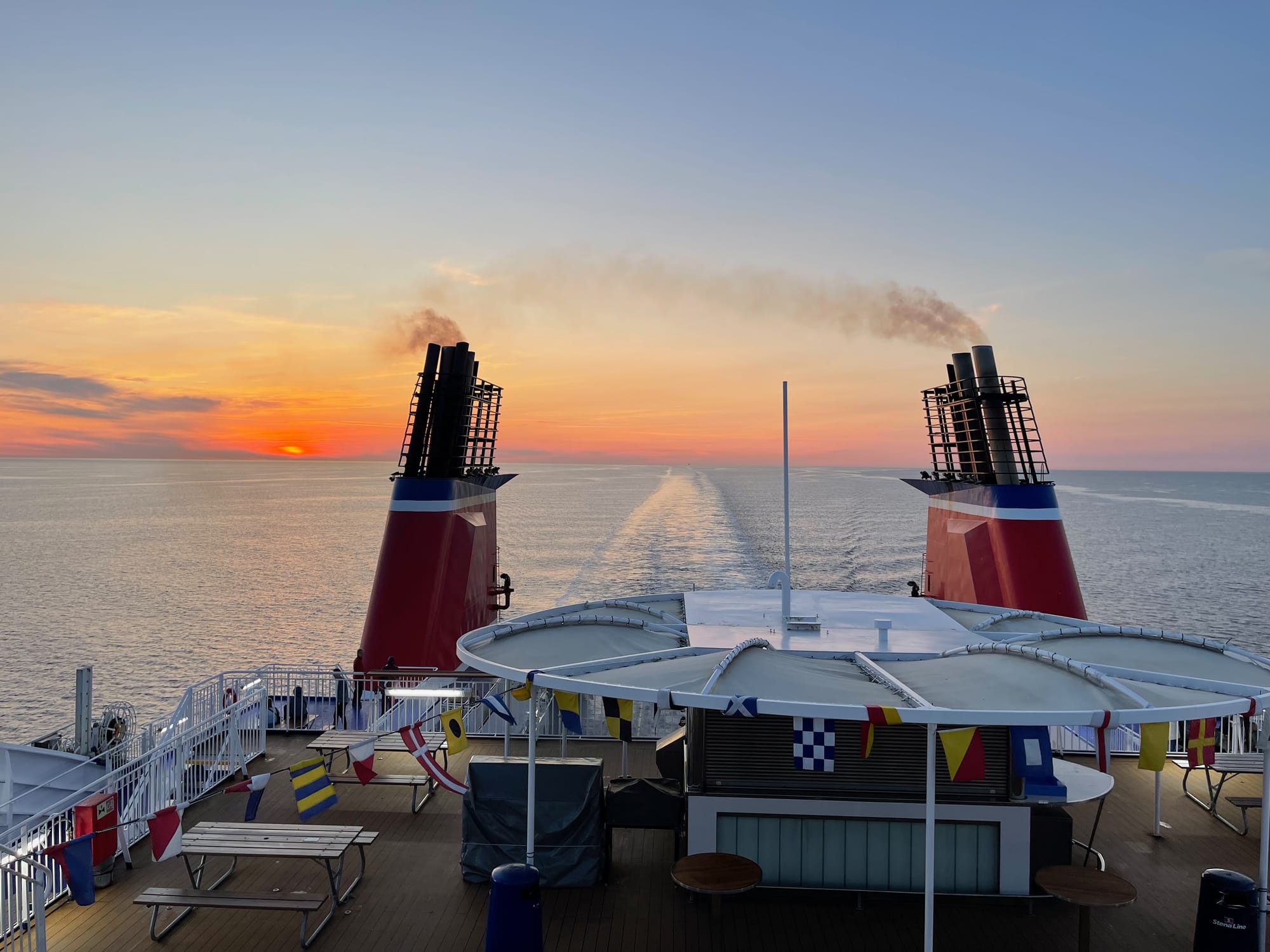 Vandaag is het tijd voor opruimen en inpakken, de aanhanger laten we in Zweden staan. We zijn heel blij met de blauwe gereedschapbakken want het inpakken van de auto is zo gebeurd. Om 13 uur rijden we aan naar Göteborg en zijn rond 17 uur bij de boot. Kwartiertje later mogen we er al op. Het is nog steeds prachtig weer en we genieten van een paar drankjes op het dek en een rustige overtocht.