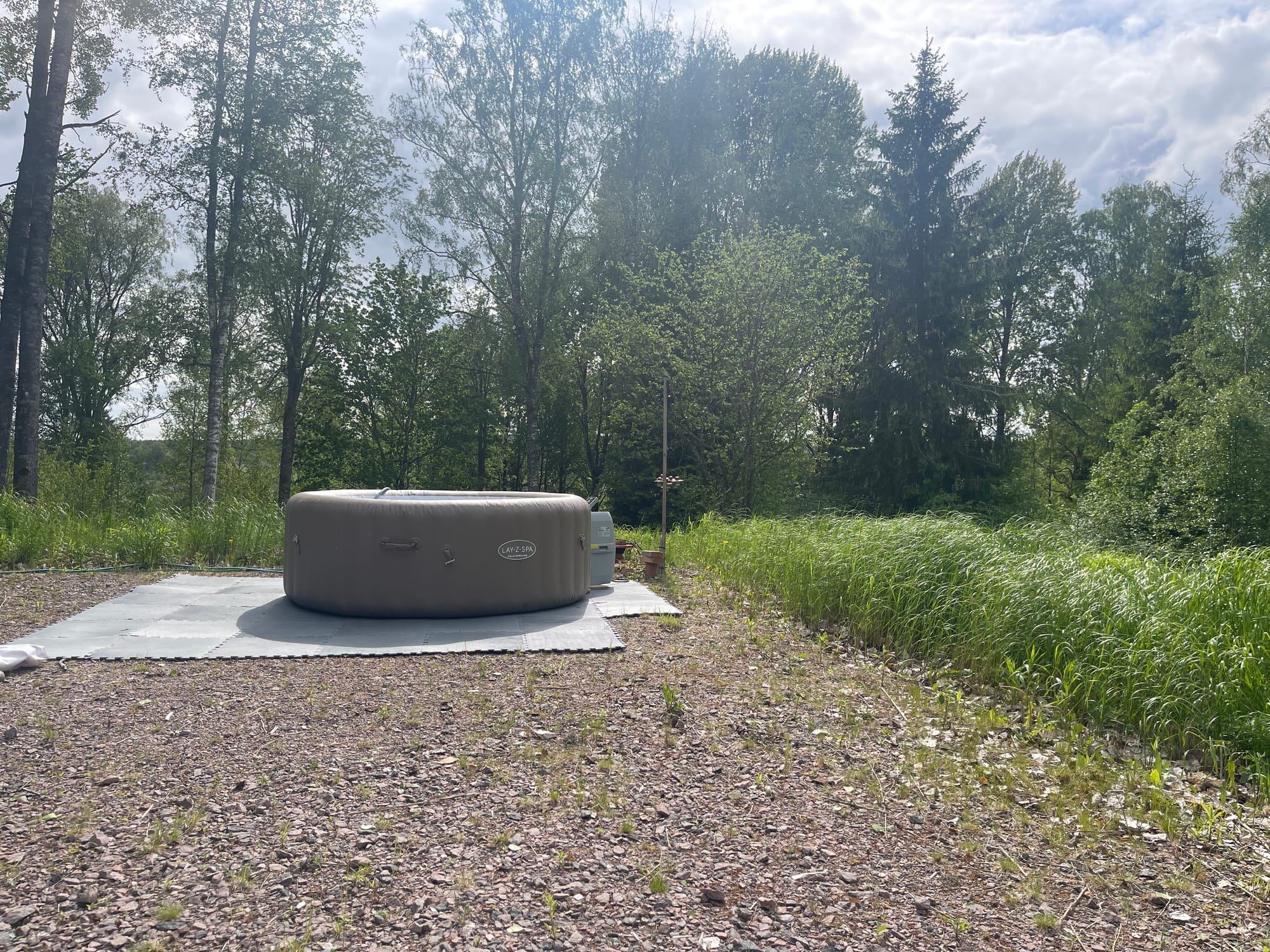 We vertrekken op vrijdag 23 mei rond 19.30 uur en nemen de route met de 2 korte overtochten (Puttgarden en Helsingor). De aanhanger is ook weer mee omdat we de hakselaar die we in NL hadden gekocht natuurlijk mee moesten zien te krijgen naar Zweden. Op zaterdag rond 14.30 uur zijn we op Baldrskogen. Zowel het terrein als de container liggen er goed bij. We pakken snel de auto uit en zetten gelijk de spa weer op z'n plek, vol laten lopen met water en opwarmen maar! Wel jammer dat het afdekzeil van de spa - die opgeslagen lag in het hutje op ons terrein en niet in de opslagcontainer - door muisjes is aangevallen en overal klein gaatjes heeft. Iets om de volgende keer rekening mee te houden.