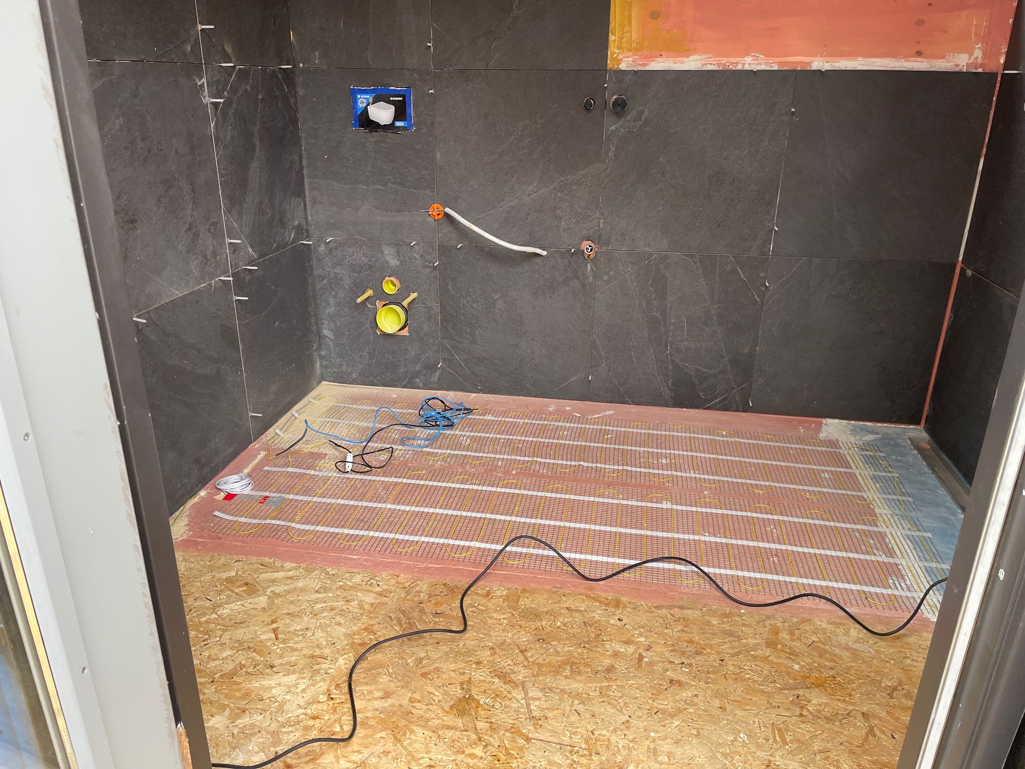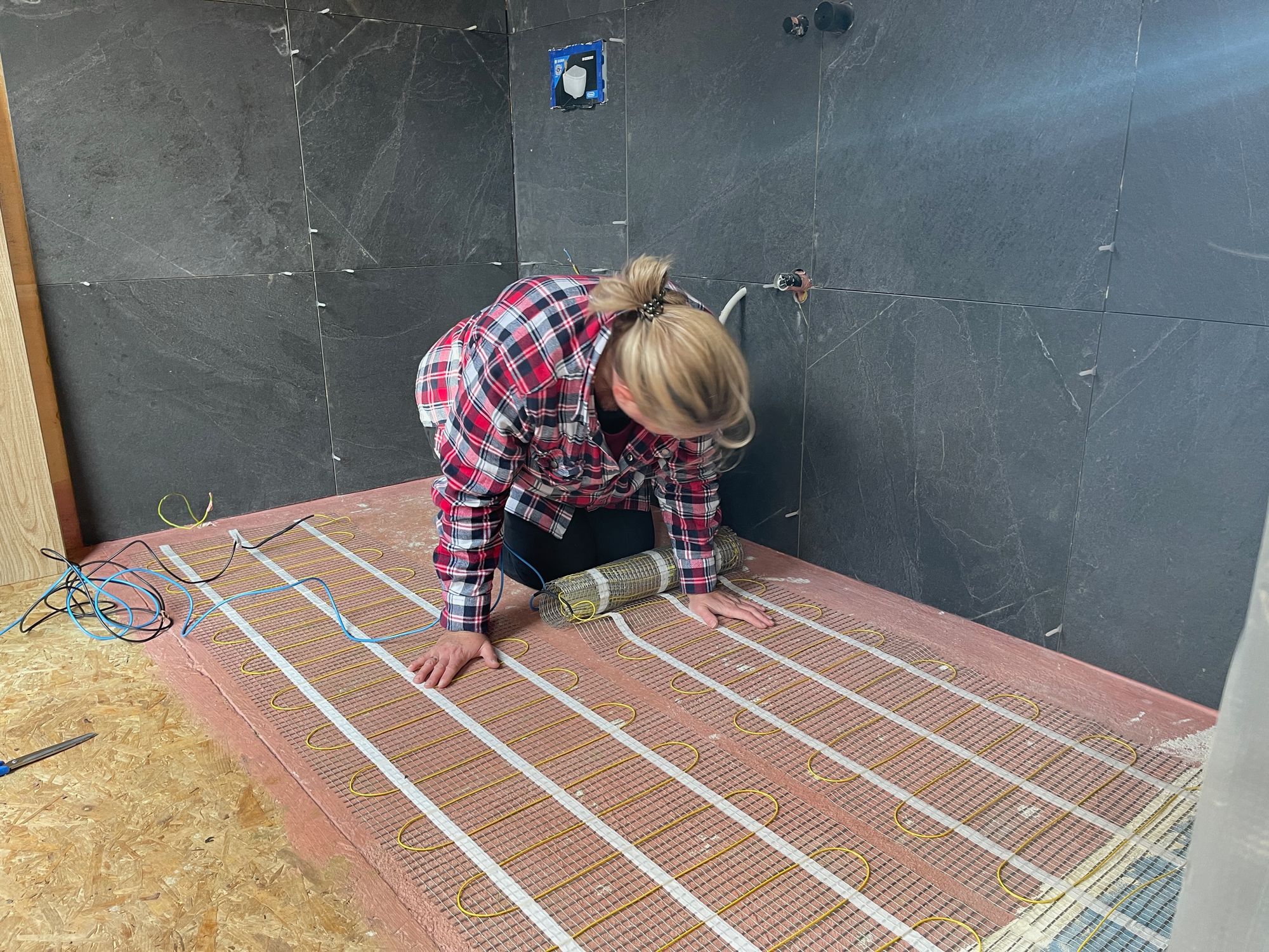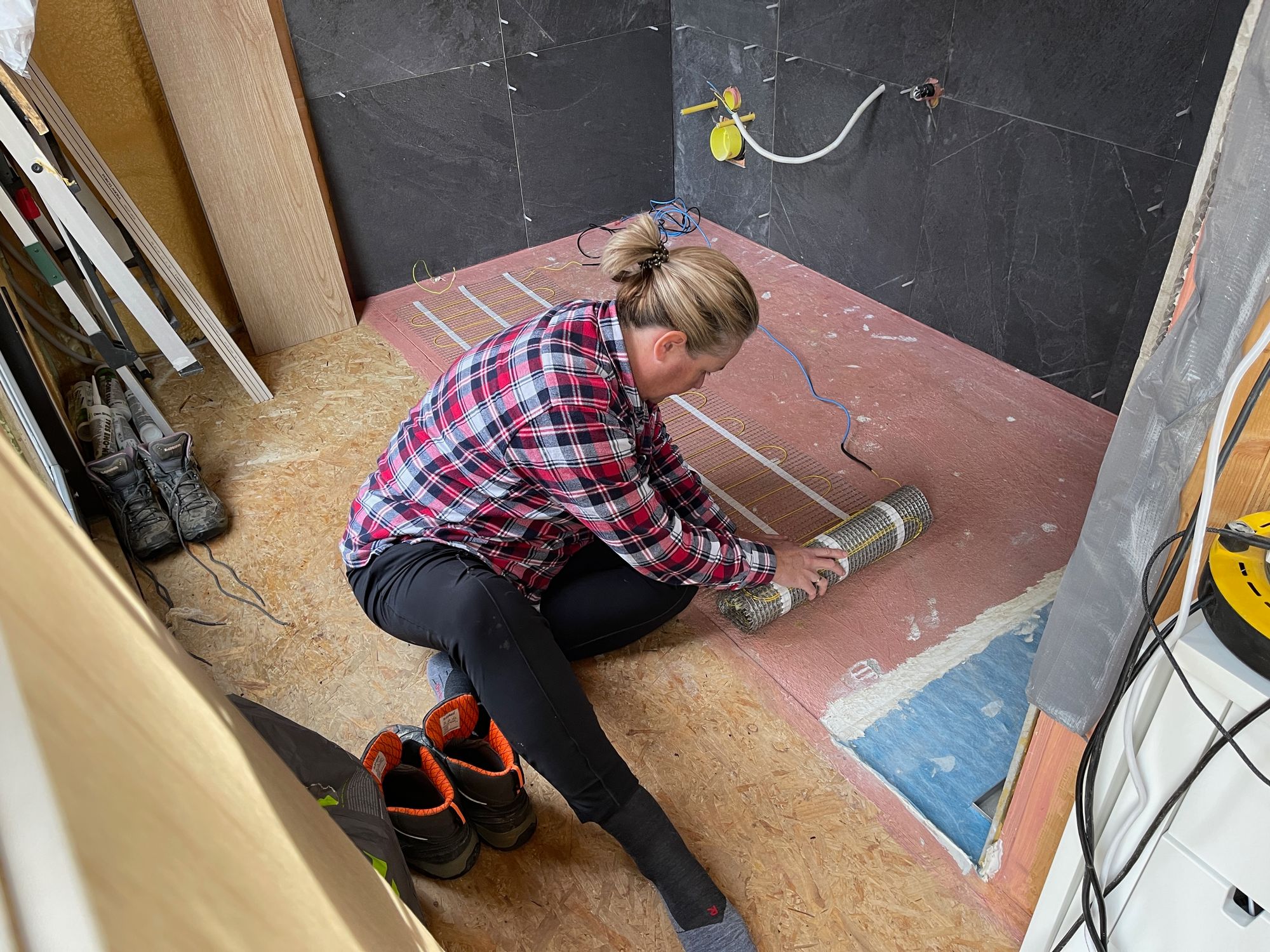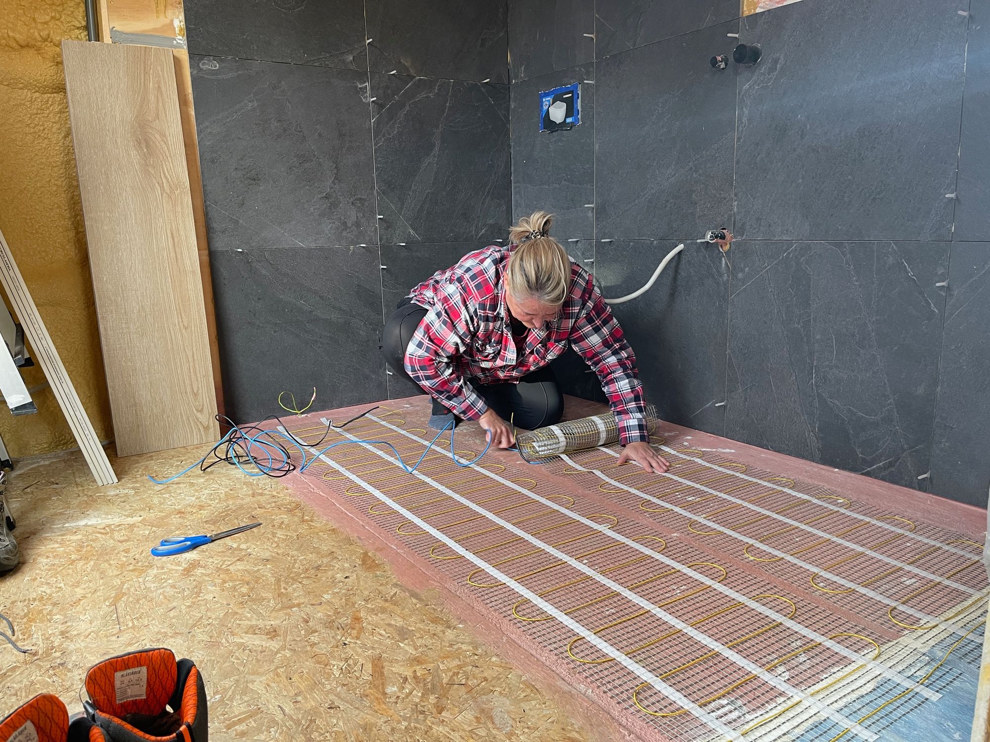 Vandaag leggen we de vloerwarming in de badkamer aan.