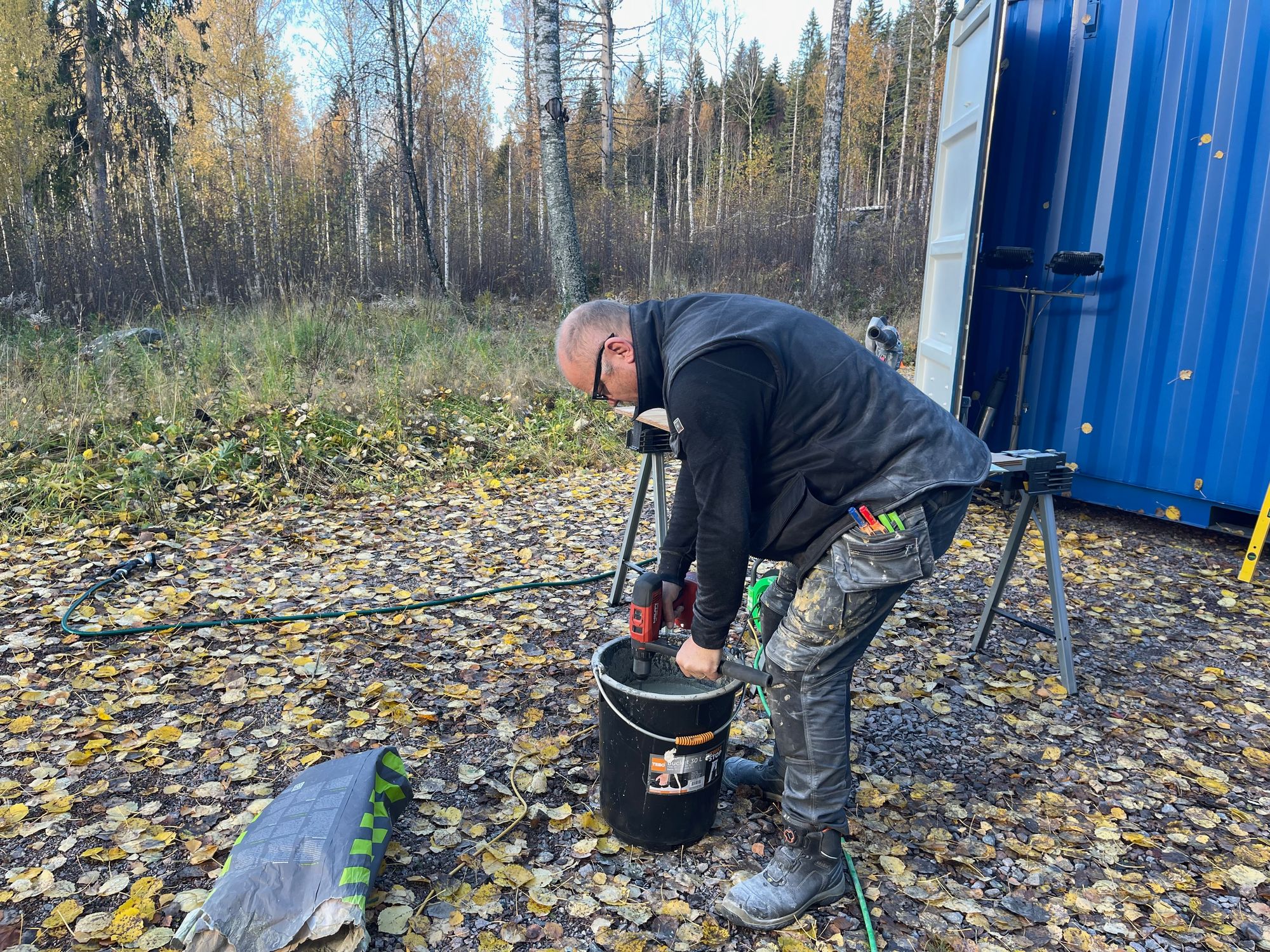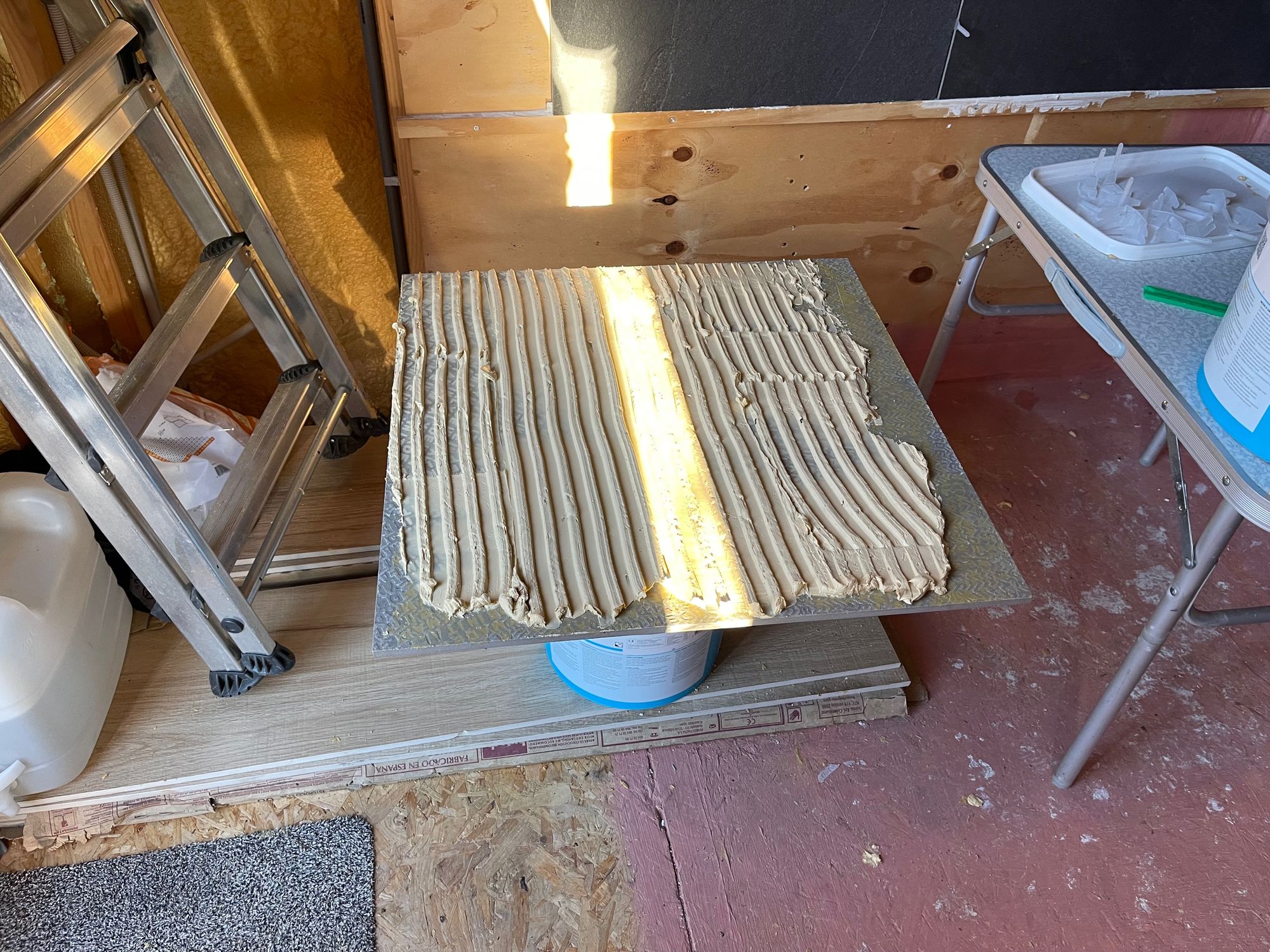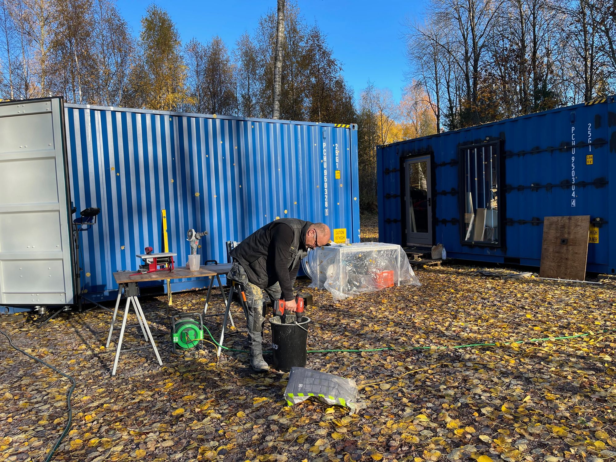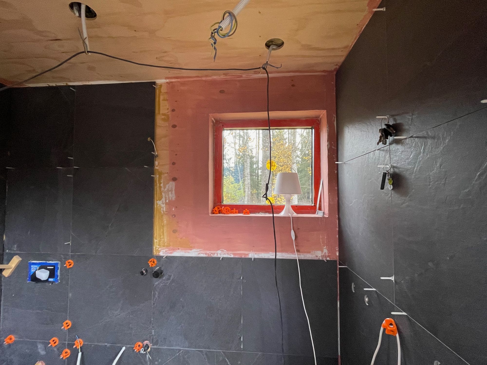 Als het middag is en mijn werk erop zit, gaan we richting Karlstad om stellingkasten en opbergbakken te halen. Nadat we de stellingkasten in elkaar hebben gezet, gaat Remco aan de slag met het ordenen van de spullen en ik stort me op de voorbereidingen van het tegelwerk in de badkamer.