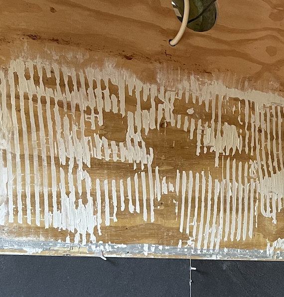 Tijdens ons bliksembezoek in de zomervakantie zijn we er achter gekomen dat een aantal muurtegels helemaal niet vast zaten. Gelukkig konden we die relatief eenvoudig van de muur afkrijgen maar de lijmresten zijn helaas wel achtergebleven op de muur. Stukje bij beetje beitel ik die eraf en aan het einde van de middag is de opslagcontainer aan kant en de badkamermuur weer redelijk schoon.