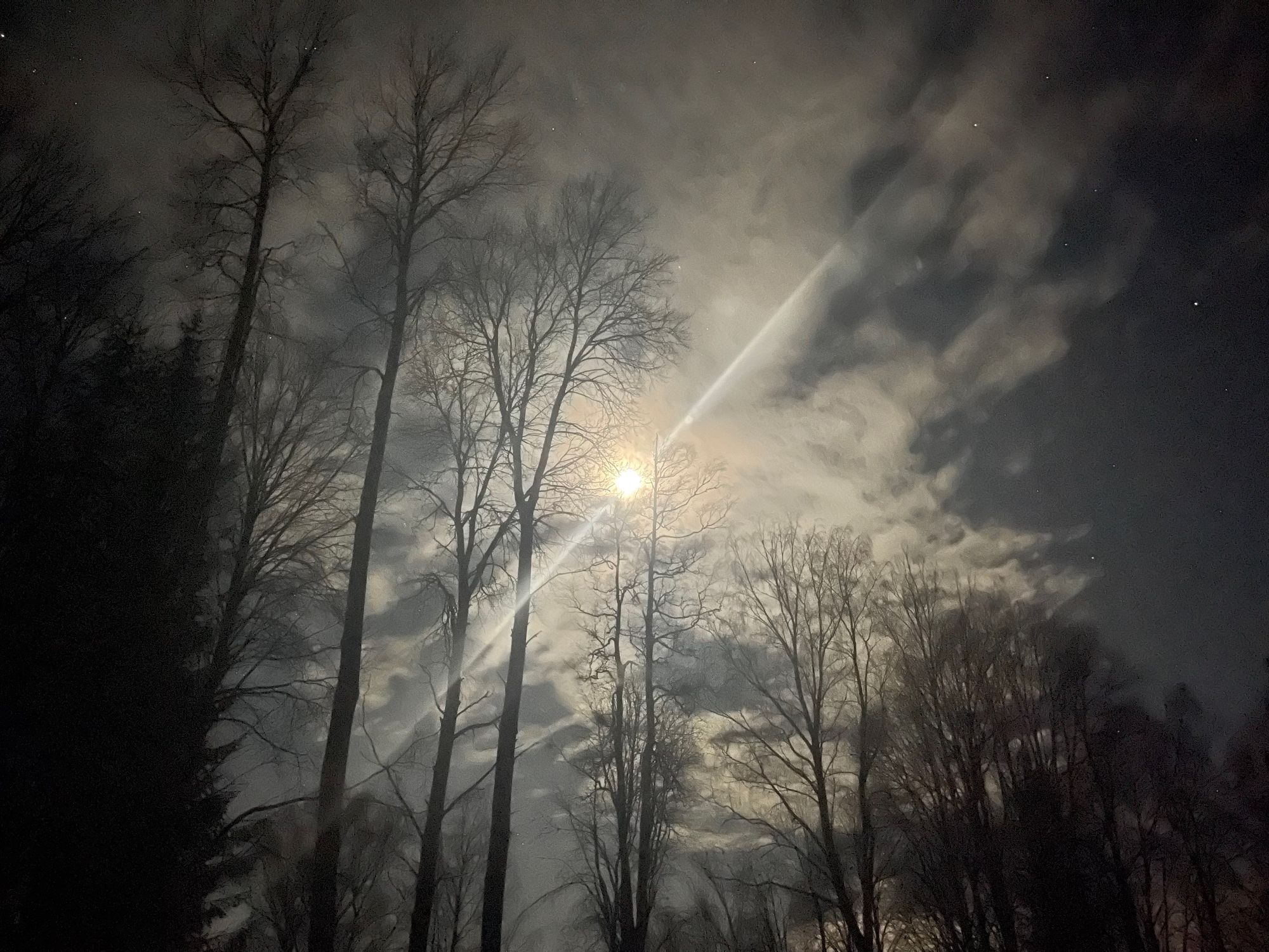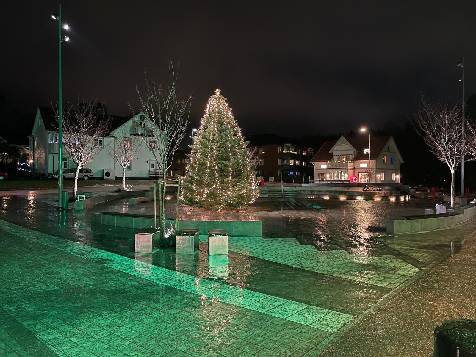 We rijden via het meer van Edsgatan terug en genieten van alle lichtjes die mensen bij hun huizen hebben. Het is een heldere avond met een half maantje die alles mooi verlicht.
