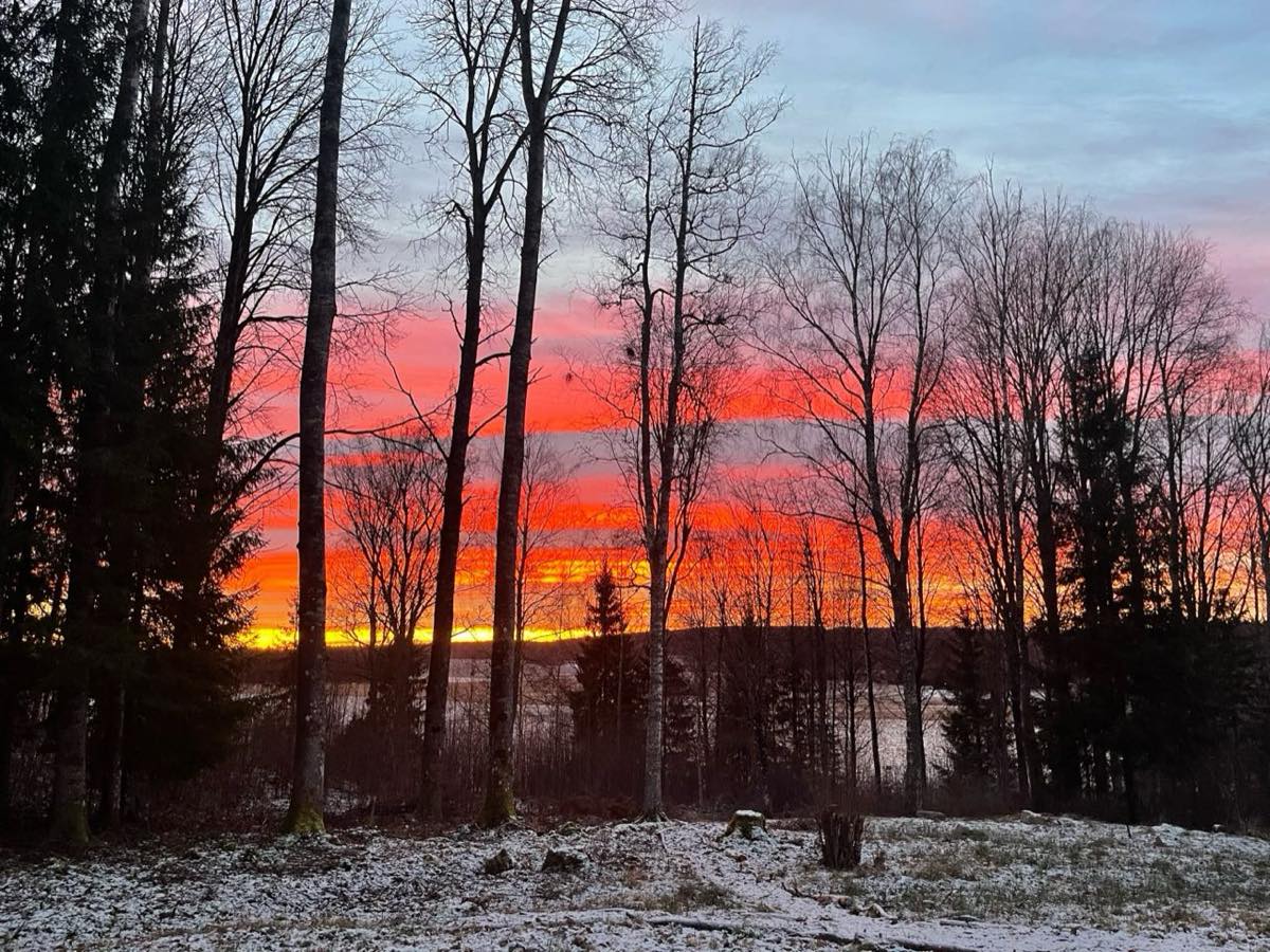 We denken dat verwarmingslint en isolatiebuis de klus gaan klaren en dat doet het zeker ook voor een korte periode. Echter, als de temperatuur nog verder daalt blijkt dat de splitter bevriest en als we dat probleem hebben verholpen blijkt dat de koperen tuinkraan bevriest. Nog weer later kost het de bronpomp ook te veel moeite om het water door te voeren, waarschijnlijk omdat het ergens onderweg toch bevriest. Ook niet heel gek als je bedenkt dat het sommige nachten inderdaad 15 graden vriest. Het goede nieuws is wel dat we kunnen genieten van een schitterende zonsondergang.