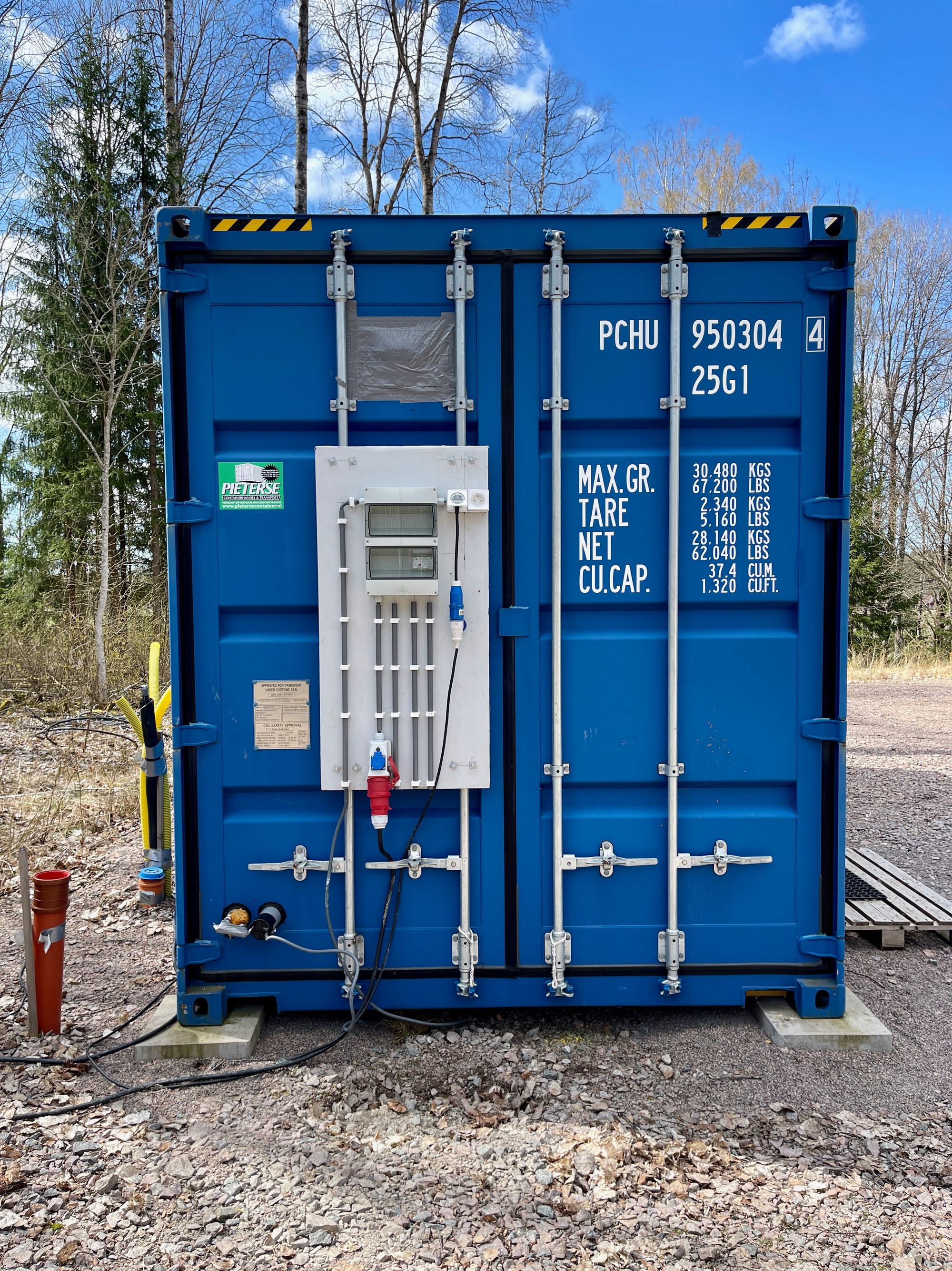 Het volgende dat we gaan aanpakken is het aansluiten van de meterkast aan de energievoorziening op ons terrein. Remco heeft in Nederland de voorbereidingen gedaan voor de externe meterkast die we aan buitenkant van de container bevestigen.