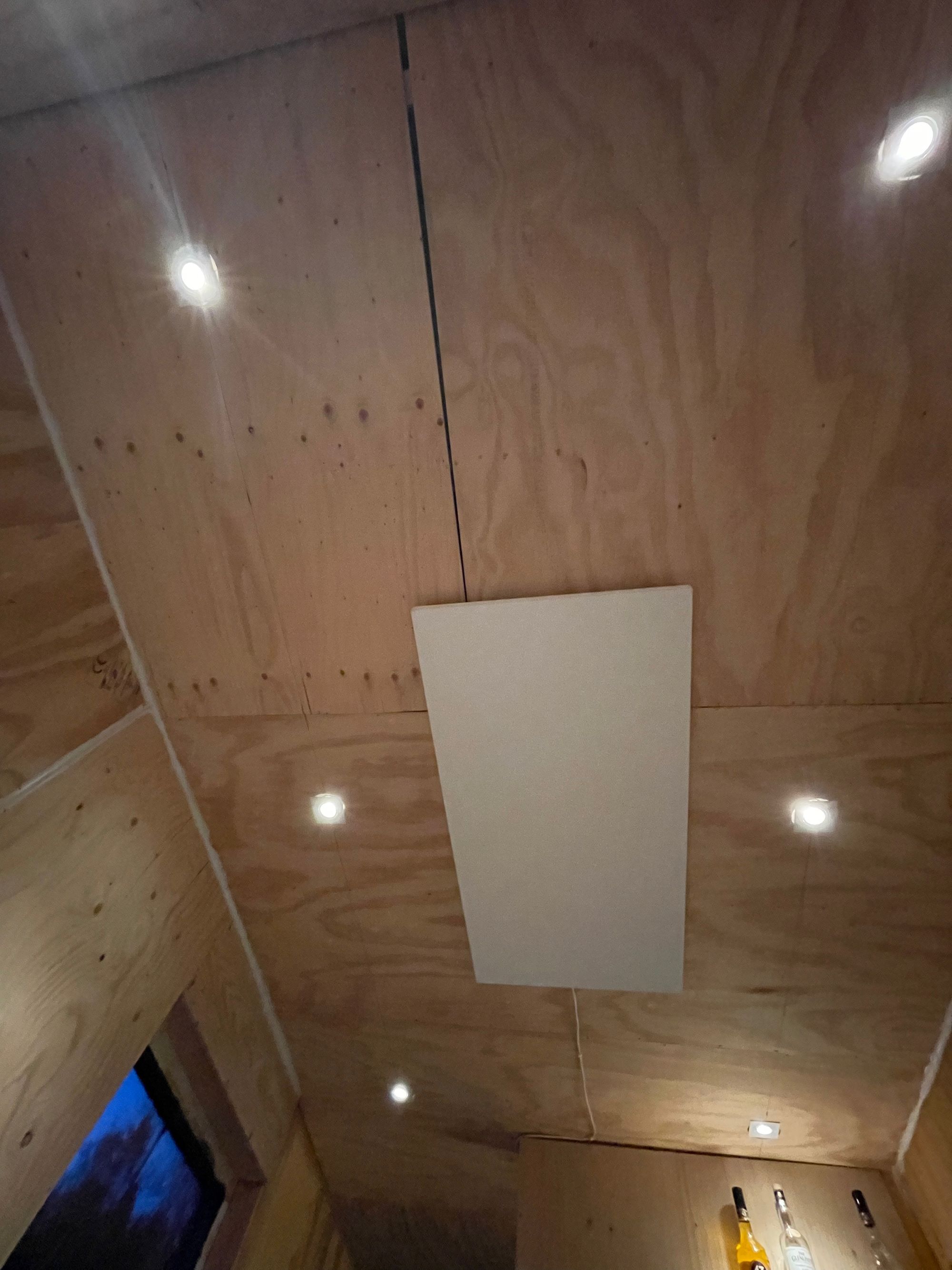 Deze externe meterkast sluiten we aan op de interne meterkast (je weet wel, die boven het nieuwe Ikea kastje) en aan die van de leverancier. Zo hebben we buiten aansluitingen voor de bronpomp en de septictank en kunnen we binnen onder andere de verlichting in het plafond gaan aansluiten. Klein klusje maar met een enorm effect want WOW, wat voelt het luxe nu in de container de spotjes in het plafond het doen!! En het verlengt ook gelijk onze dagen gevoelsmatig. Daar waar we voorheen al vrij snel als het donker werd "op stok gingen" merken we nu dat we in de avond nog tijd "over" hebben.