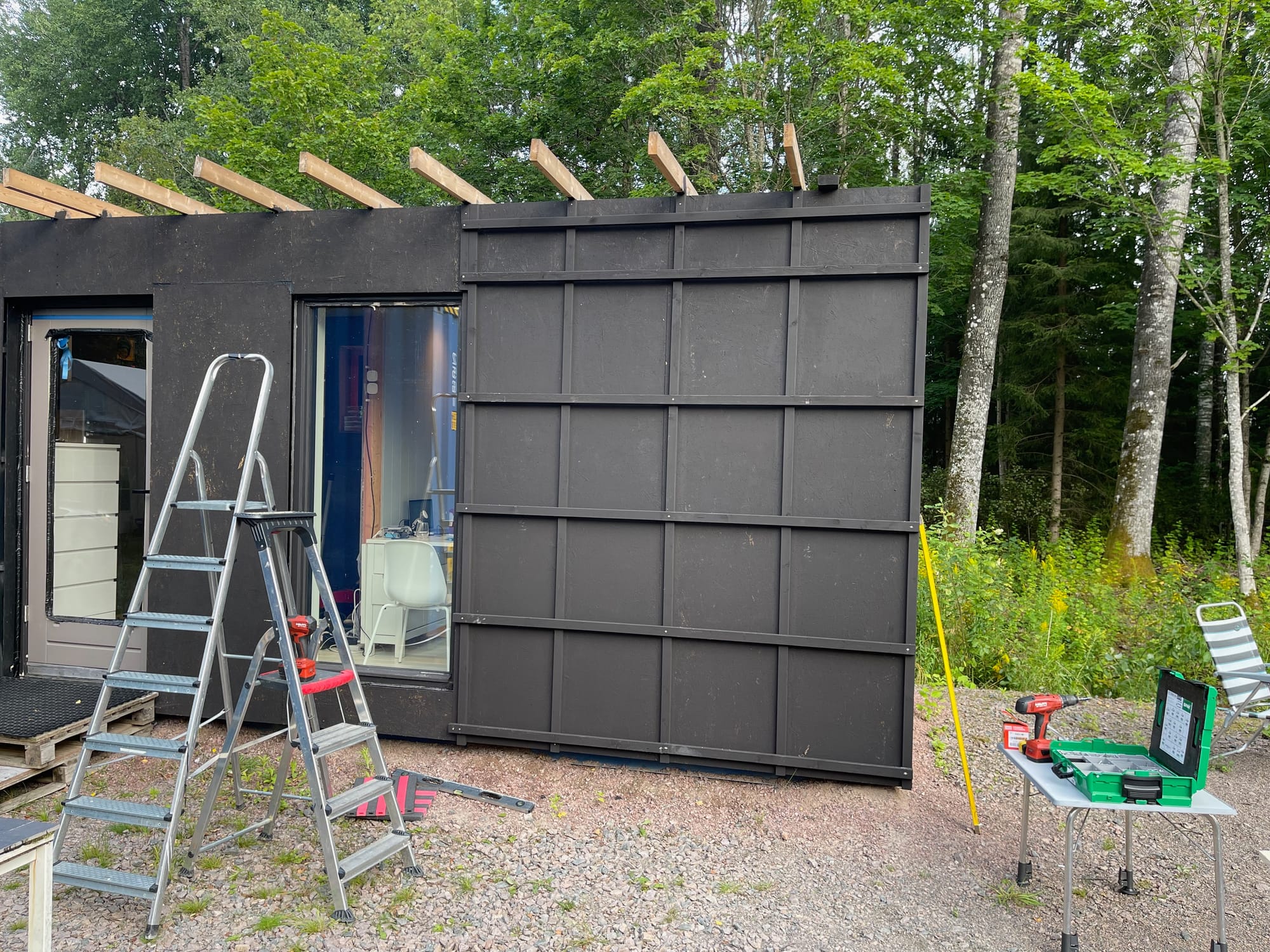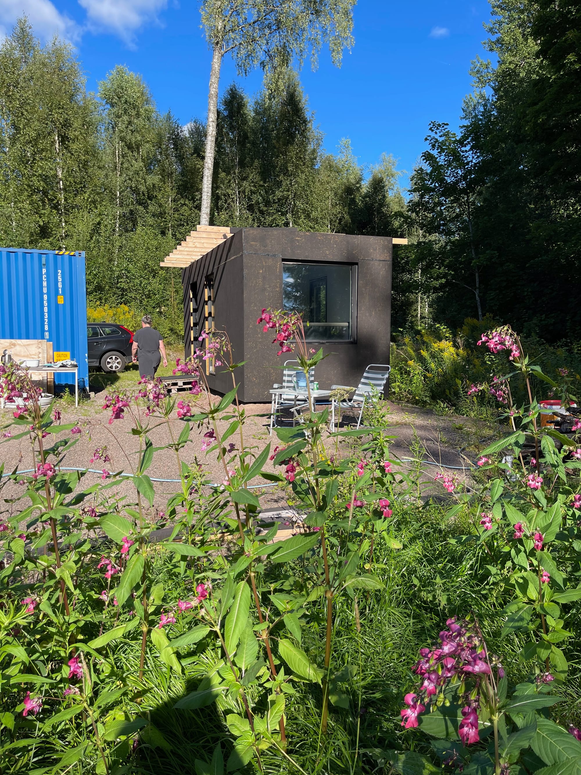 De tijd zit er weer op, we zijn blij met wat we hebben kunnen bereiken en met het resultaat. Het begint nu echt ergens op te lijken. Het terrein begint een klein beetje tuingevoel te geven in plaats van wildernis en de container begint meer en meer te lijken op een prachtige modern onderkomen in het bos.