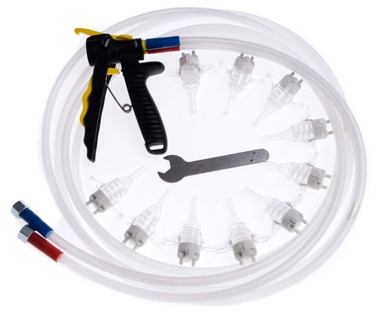 - Als de tanks eenmaal zijn aangesloten moeten ze ook in één keer gebruik worden. Na opening slechts zeer kort houdbaar.