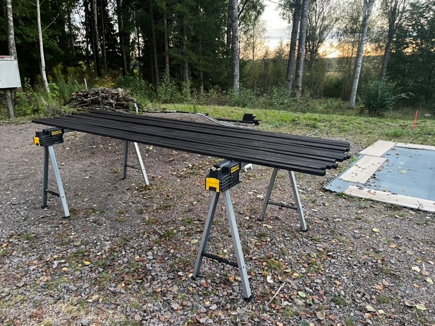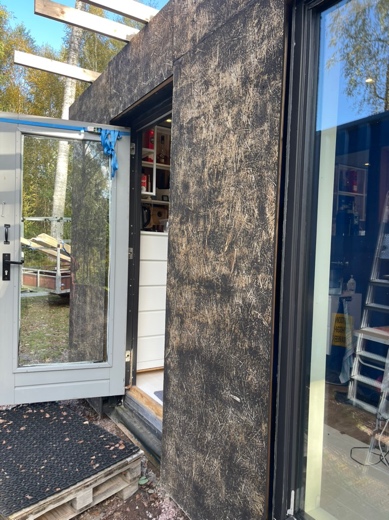 Ter voorbereiding op het verder aanbrengen van de cladding ga ik de OSB-platen nog een keer schuren en schilderen.