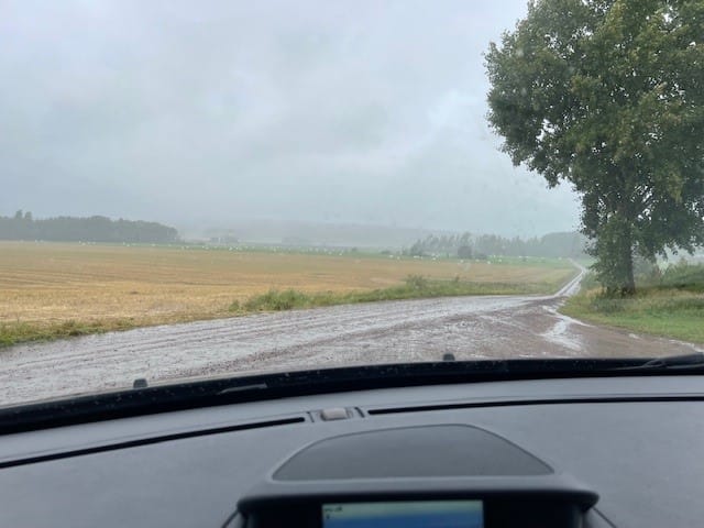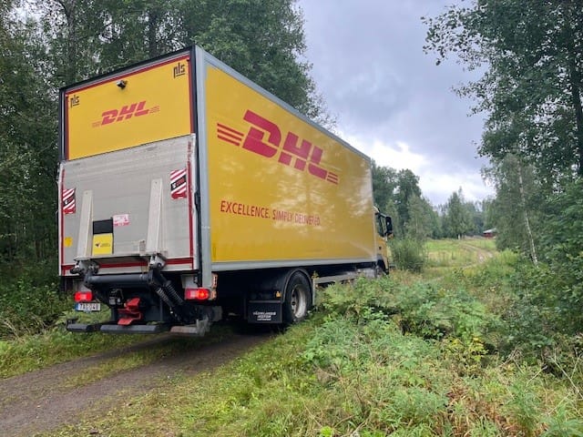 12:47 uur. We worden gebeld door een Zweeds telefoonnummer en het blijkt de bezorger van DHL te zijn. Hij geeft aan dat hij de spullen bij zich heeft en over ongeveer een half uur bij ons is. Wel merkt hij op dat hij met een vrachtwagen rijdt en hij wil weten of hij wel kan keren bij ons op het terrein. We leggen uit dat we hem zullen opwachten op de doorgaande weg bij onze brievenbus en dan verder afstemmen hoe we de spullen kunnen lossen. Gaat het nu dan toch echt gebeuren?