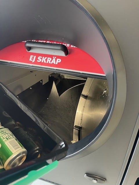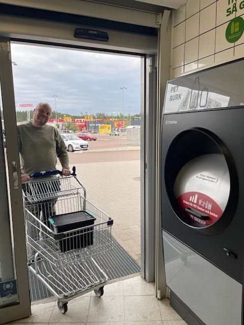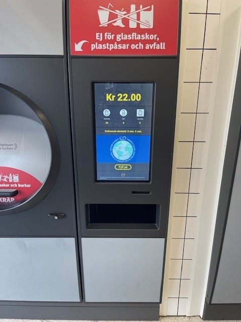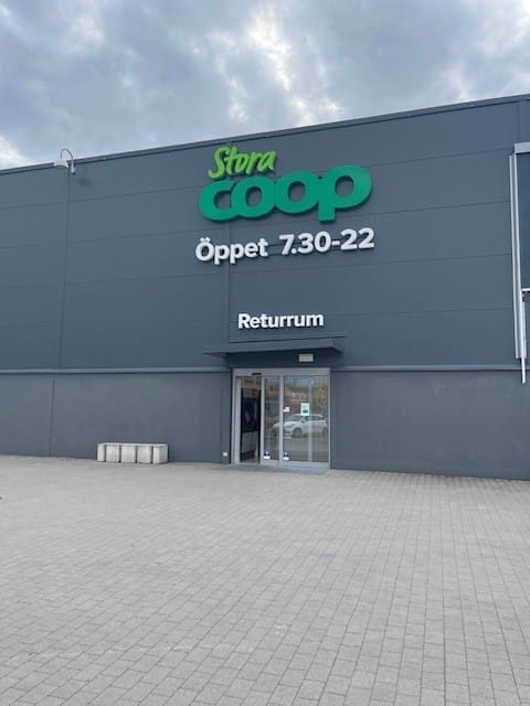 We doen gelijk maar even de boodschappen bij de grote COOP in Karlstad. Bij deze COOP hebben ze echt een briljant statiegeldflessenenblikjesinleverpunt. Hier noemen ze het een Returrum en wat zouden we daar in Nederland ook blij van worden zeg! Je kunt hier namelijk al je statiegeldflesjes en blikjes in 1 keer in een grote trommel gooien. Je sluit het deurtje, de trommel gaat draaien (weer zo'n leuke wasmachine ;-)) en het apparaat telt het statiegeldspul en voila, je bonnetje met je tegoed rolt eruit. Okay, dit laatste is natuurlijk niet nieuw maar wat een uitkomst is die trommel zeg: dat je niet al je losse flesjes en blikjes één voor één moet invoeren.