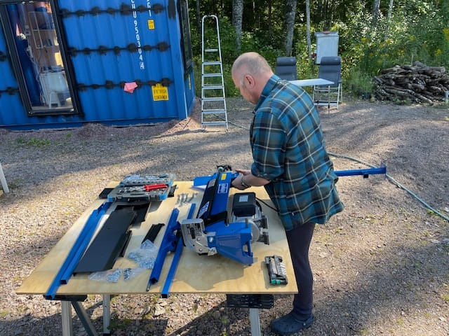 En het lijkt me leuk om vandaag de kloofmachine in gebruik te nemen. Na het openen van de doos en het uitpakken van het loodzware ding, raak ik een beetje overweldigd door de hoeveelheid schroeven, bouten en moertjes die bijgeleverd zijn voor het aanbrengen van het onderstel. Nu ben ik niet heel snel van de leg en bij welk Ikea product laat ik me hier ook echt niet door van de wijs brengen, maar aangezien dit een heavy duty machine is en niet zomaar een kastje, durf ik het toch niet aan. Gelukkig heb ik altijd een reddende engel in de buurt die de klus voor me begint en het op een manier aan mij overdraagt dat ik de laatste kleine schroefeindjes aan elkaar kan knopen.