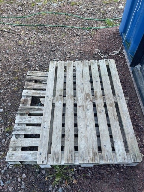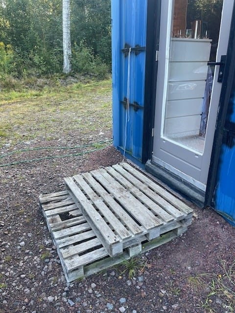 Het is nog steeds prachtig weer en in de afgelopen tijd heb ik een aantal kleine klusjes op mijn to-do lijstje verzameld die ik vandaag ga proberen af te werken. De eerste klus is het enigszins fatsoeneren van de opstap die we bij de container hebben. Tot op heden gebruikten we oude pallets die we opstapelden, maar echt heel stevig en veilig was dat niet. Het zal niet de eerste keer zijn dat een van ons een klein stukje uitglijdt en vervolgens een kreet slaakt die ik hier niet zwart op wit ga zetten. Inmiddels zijn de pallets zo slecht geworden dat ook de honden het niet meer aandurven om via het opstapje in de container te komen wat vervolgens ook weer leidt tot allerlei ongezonde situaties. Kortom: hoog tijd voor het opstarten van een projectje.