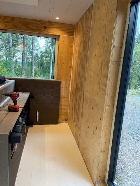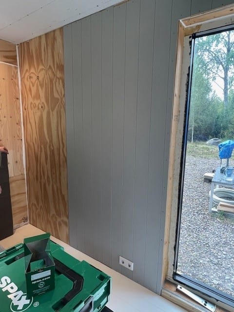 Het plaatsen van de panelen gaat supergoed. Wel veel pas- en meet werk. Maar het resultaat is echt geweldig! Het meest lastig is nog om de elektriciteitsdraden achter de houten wand vandaan te hengelen. Maar kijk nou eens hoe mooi die stopcontacten zijn!!! En hoe heerlijk is het dat we nu overal stroom vandaan kunnen halen!!
