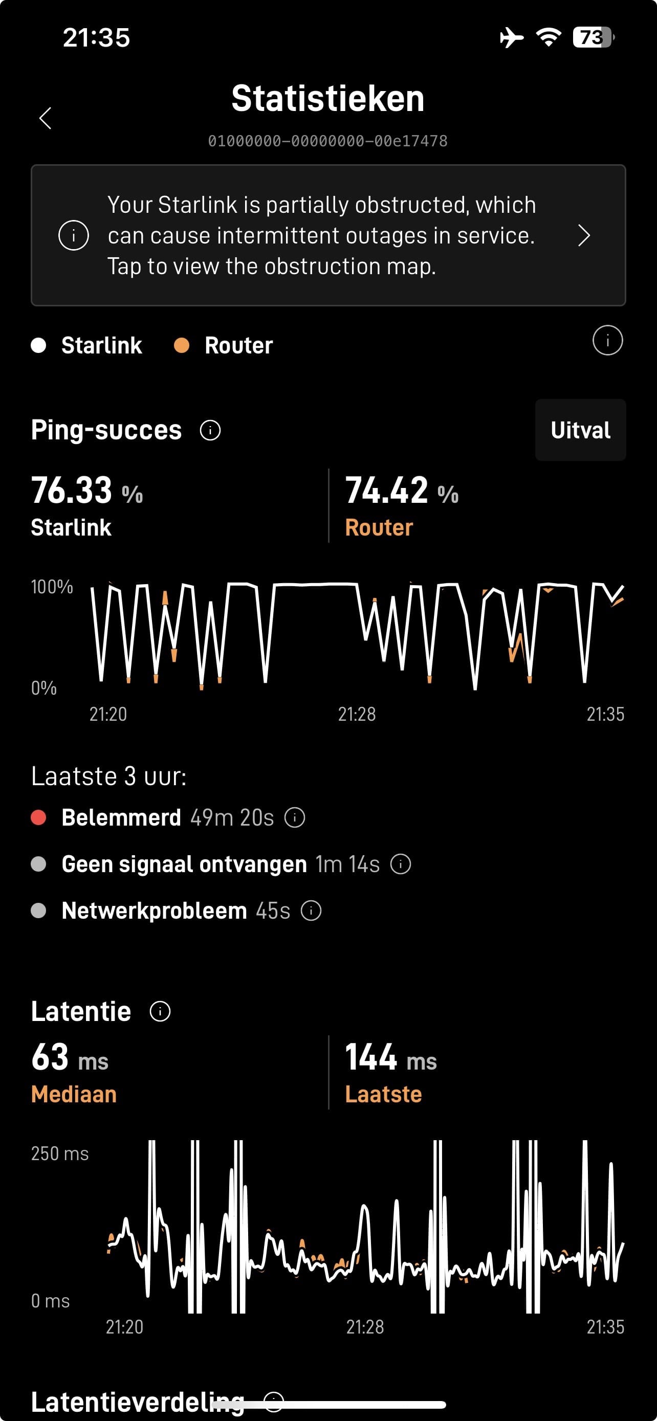 Het afwachten of Starlink beter gaat werken op de Elon-tower doen we vanuit onze spa en als de avond valt en we weer lekker chillaxen in ons huisje zien we dat data van Starlink er best goed uitziet. Daar waar we in het verleden niet meer dan 50% bereik hadden, gaan we nu richting 80%.