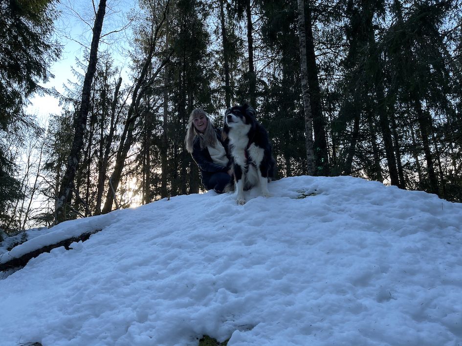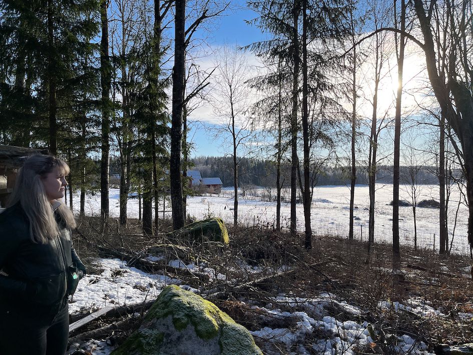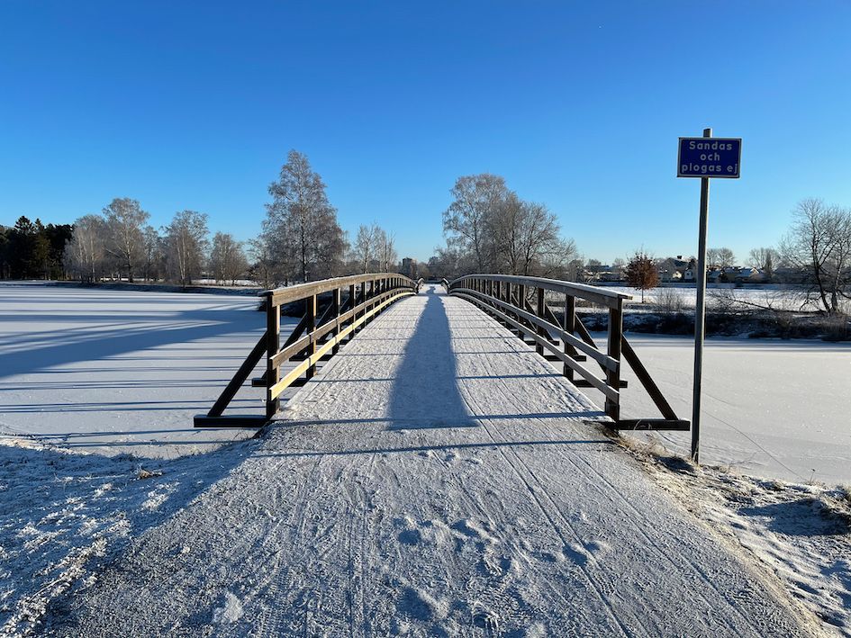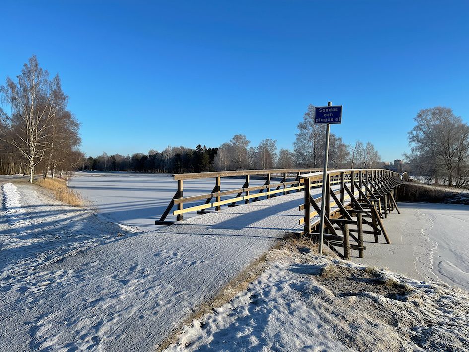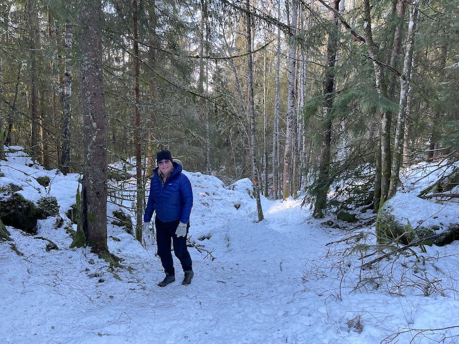 Omdat we niet veel kunnen doen op ons kavel, besluiten we een wandeling te gaan maken richting het meer (Acksjön) dat ten noorden van ons ligt. Na een stijle klim op de route met de naam Bergstigen komen we uit bij een rots met uitkijkpunt vanwaar we het volledig bevroren meer van Molkom zien liggen (Molkomssjön).