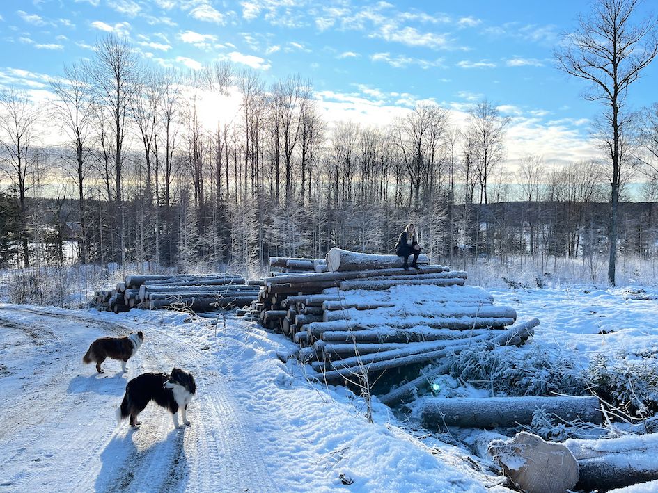 We moeten rekening houden met de voetzolen van de honden die geen bescherming hebben tegen de sneeuw en het ijs en dus maken we er niet een hele lange wandeling van. Op de terugreis stoppen we langs de kant van de weg om nog meer foto's te maken van het betoverende witte landschap. Gelijk achter ons stopt er een auto, een man stap uit, loopt naar ons toe en vraagt of hij ons ergens mee moet helpen. De vriendelijkheid en behulpzaamheid van de mensen in deze omgeving is ons al eerder opgevallen en we zijn dan ook heel blij dat we gekozen hebben voor dit land. We bedanken de man vriendelijk voor zijn aanbod om te helpen maar leggen hem uit dat we stil staan om foto's te nemen. Hij stapt weer in een zwaait nog eens vriendelijk naar ons terwijl hij zijn weg vervolgt.
