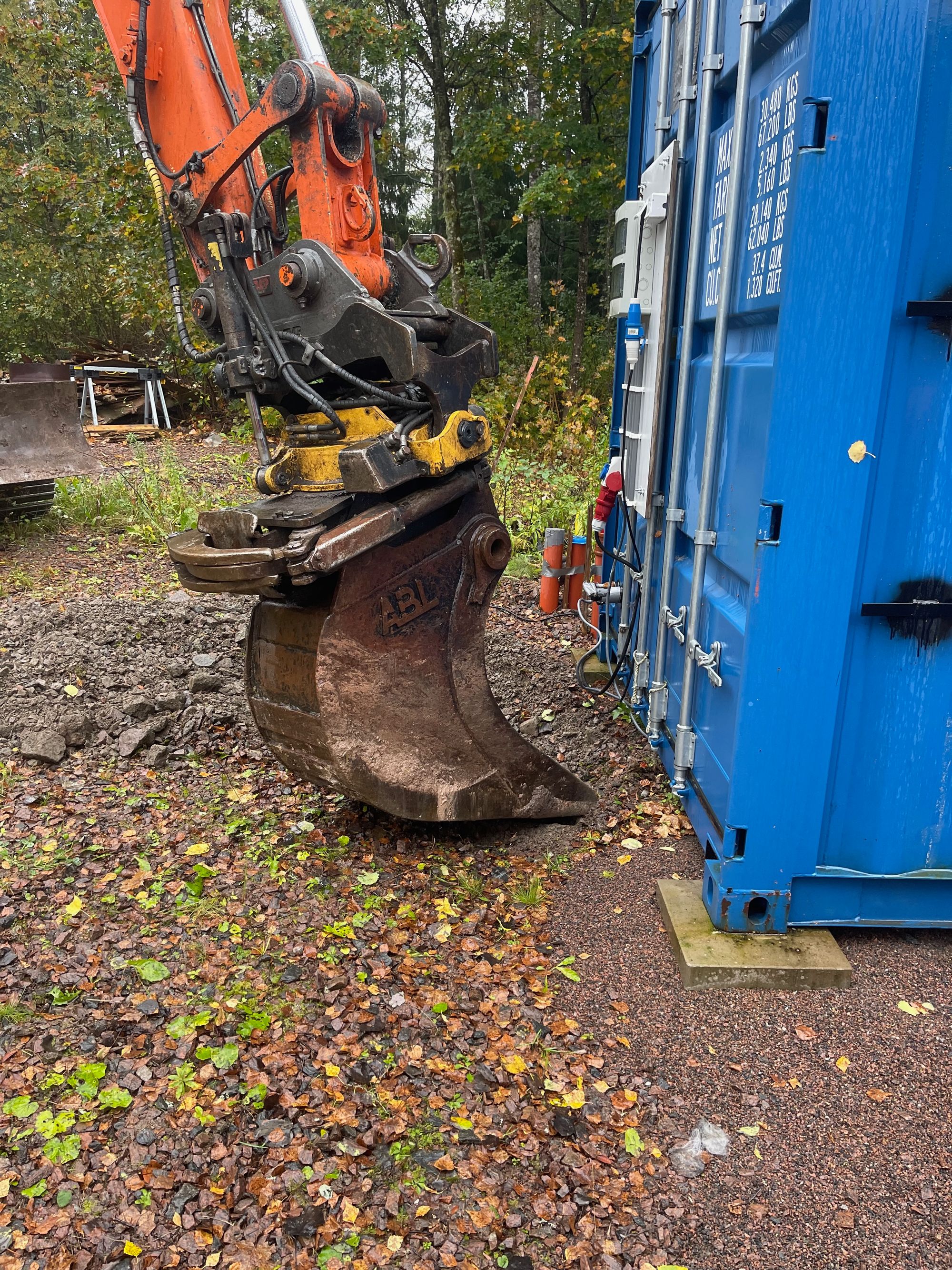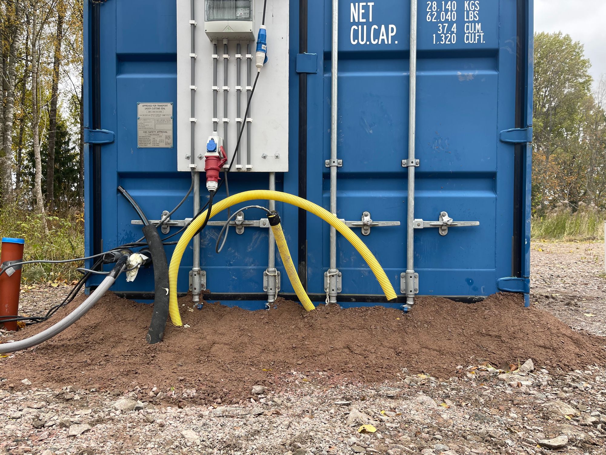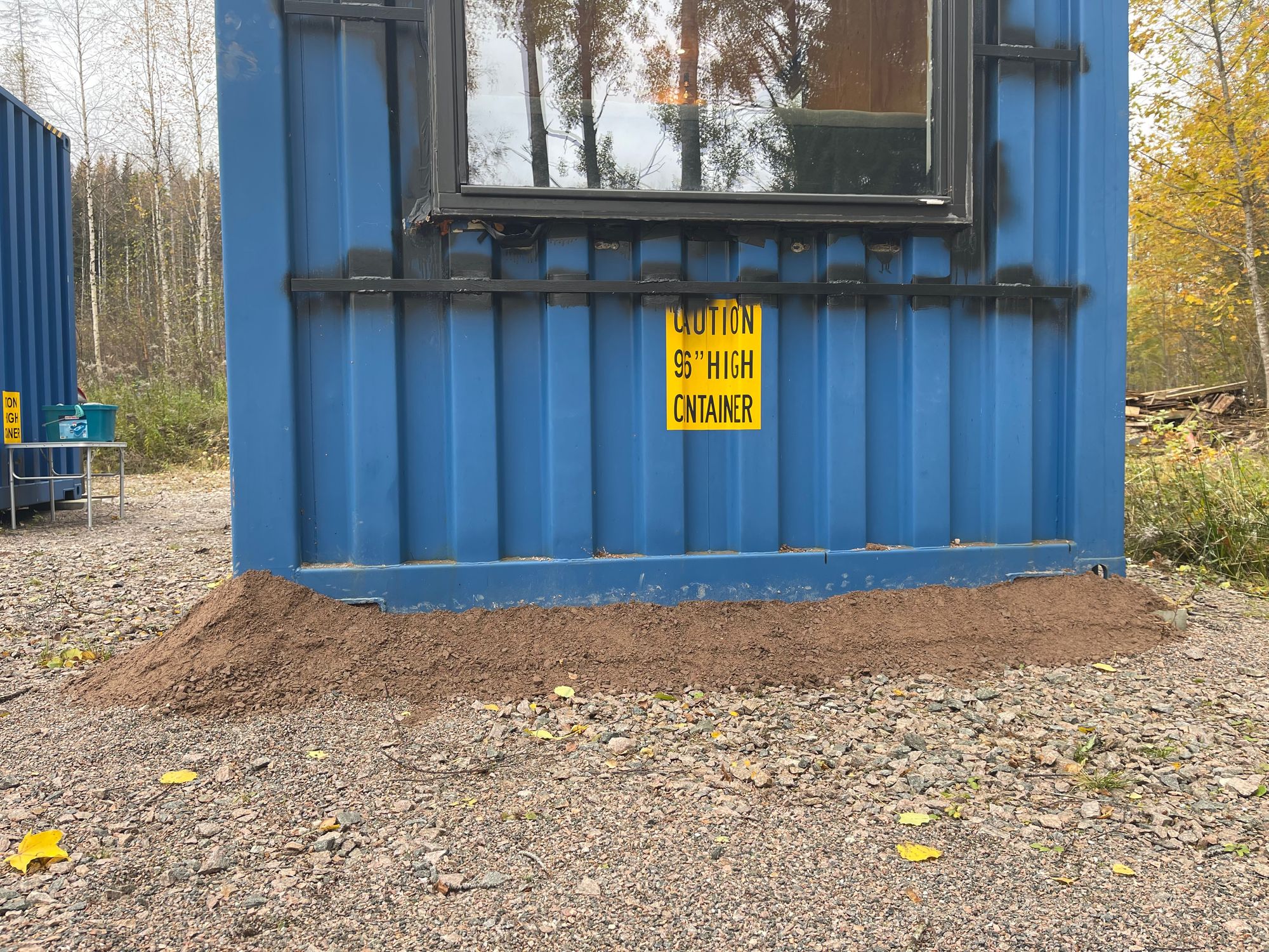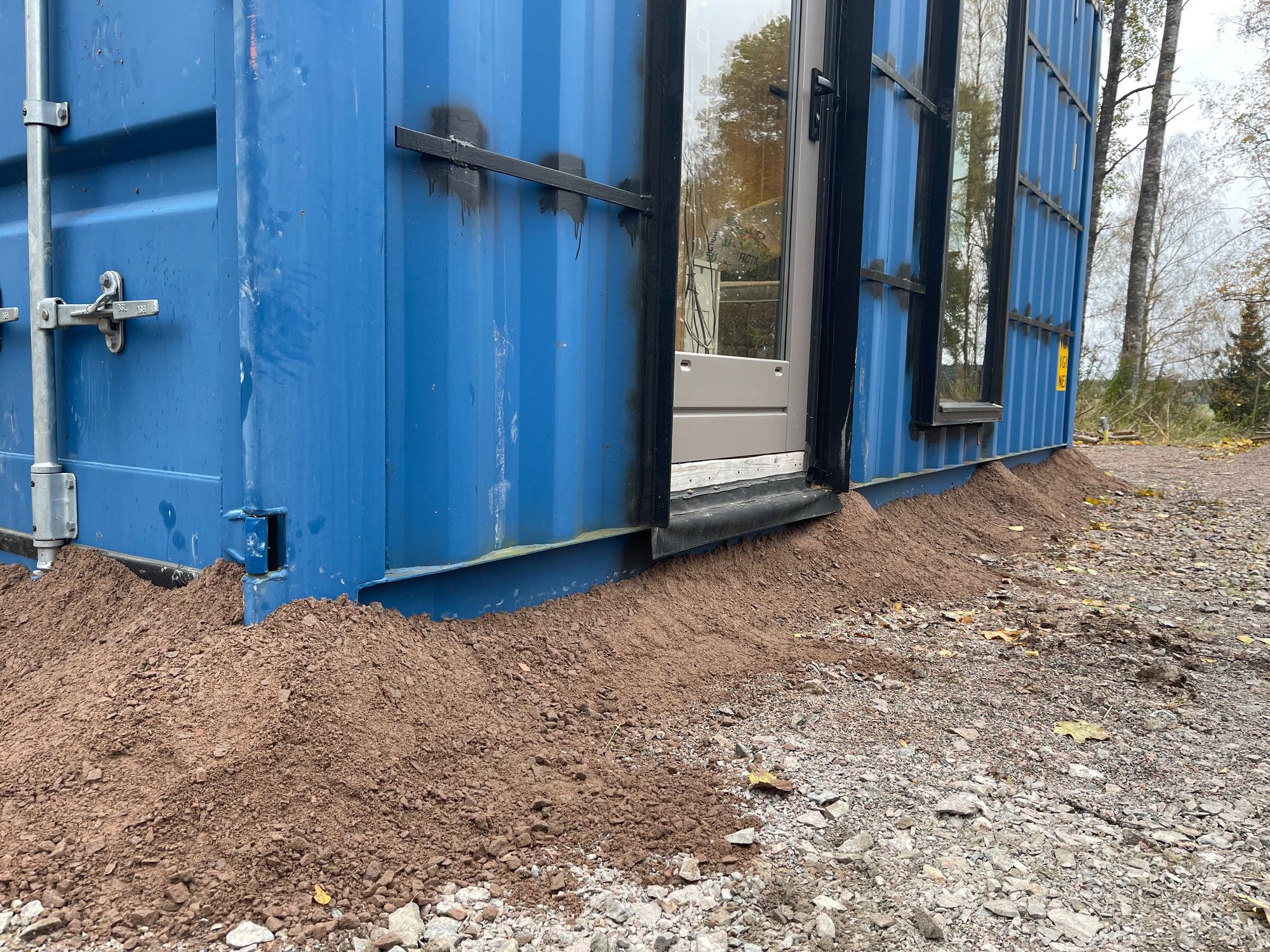 - Een 40 ft container die we gelijk op de juiste plek zetten en die in de toekomst als woon- en werkkamer gaat dienen en die we voor nu als opslag kunnen gebruiken.
