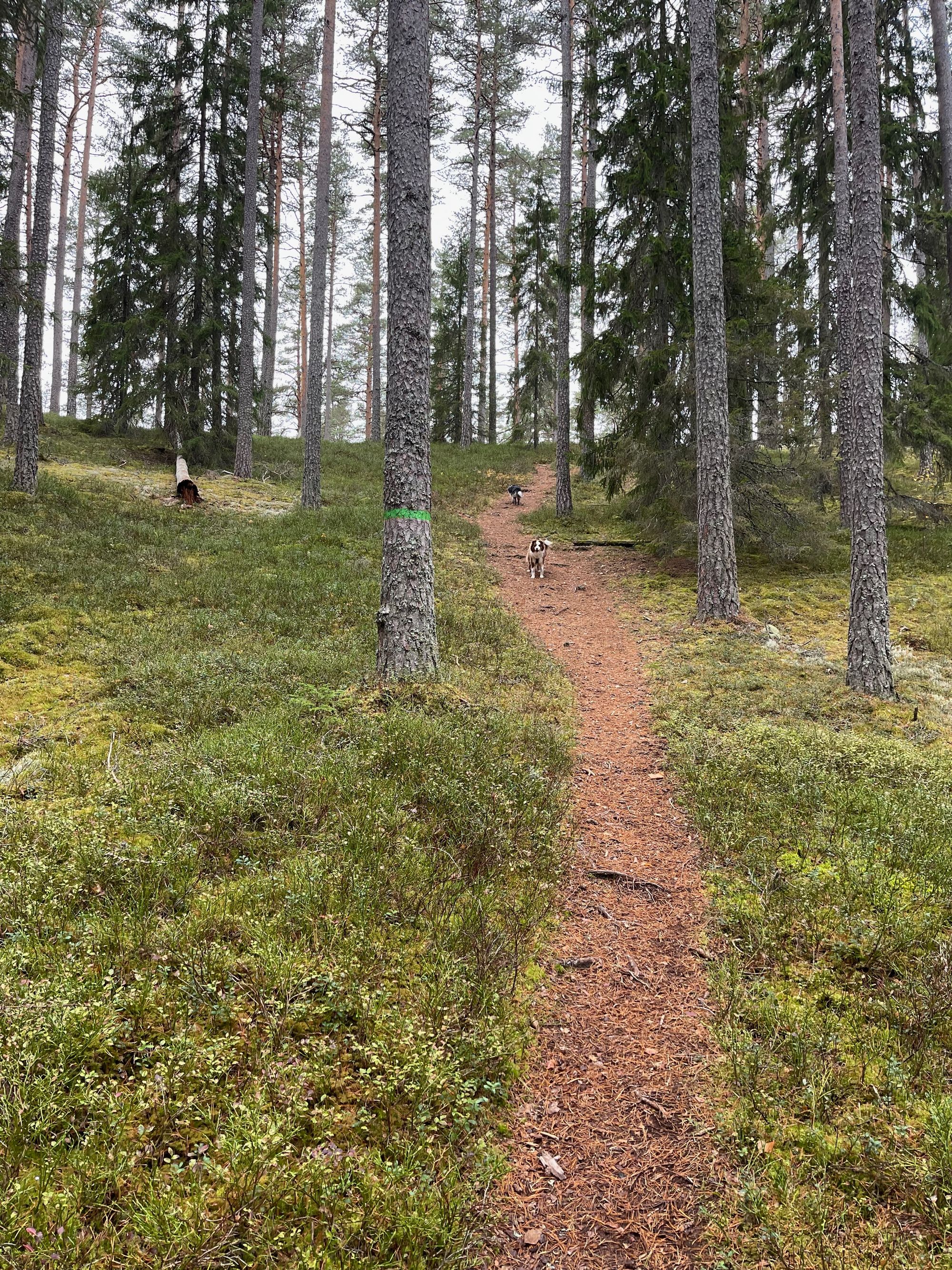 In de middag begint het weer wat op te knappen en besluiten we in de buurt een wandeling te maken. Er ligt richting Filipstad een natuurpark waar we naar toe gaan. Het is een bos met veel wandelroutes en we kiezen er een uit van ongeveer 5 kilometer met heuvels die zijn ontstaan door het opstuwende ijs in de IJstijd. Het is een mooie, pittige wandeling, zeker voor Myla. Ze blijft continue achter, treuzelt verschrikkelijk en ik kan niet anders doen dan haar aan te lijnen zodat ze in ieder geval mee blijft komen. En voor diegene onder jullie die Myla kennen........ als blikken konden doden, dan had ik dit stukje niet meer geschreven. Wat was ze beledigd!