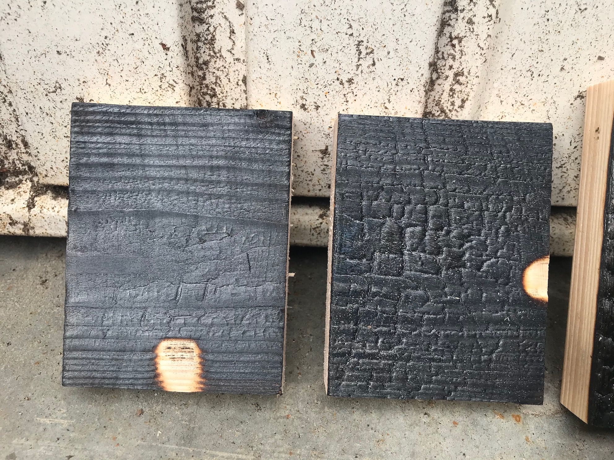 Bij deze techniek wordt hout aan het oppervlakte verbrand waardoor het hout verduurzaamd wordt. De verkoolde laag zorgt ervoor dat het hout bestand is tegen weersinvloeden en brandwerend is. Bijkomend voordeel is dat insecten en schimmels het hout ook veel minder aantrekkelijk vinden als het verkoold is.